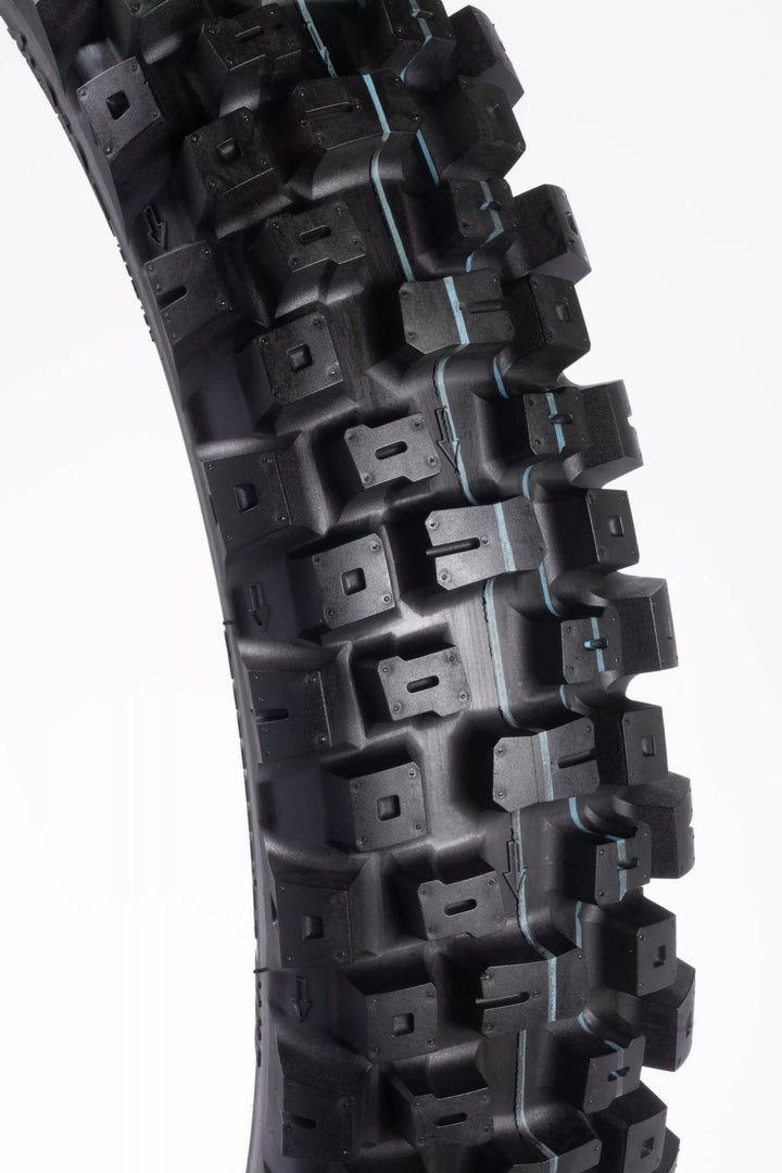 The latest addition to the Motoz MX tyre range is the Terrapactor MXI (MX intermediate) competition tyre. Engineered with a lightweight carcass and designed to excel in intermediate to hard terrain (mix of loose and packed soil, hard packed soil and deep heavy ruts). The benchmark for MX tyre performance across multiple types of terrain!, The MXI tyre stands out with its distinctive pattern, specifically crafted to deliver top performance. By strategically incorporating flex points within the carcass and knobs, the MXI tyre provides predictability and enhanced corner grip, adapting and flexing according to the terrain to give greater control and confidence while riding., Application: MX Intermediate to hard terrain (mix of loose and packed soil, hard packed soil and deep heavy ruts), Full range from Mini-Cross to Big bikes (15 different sizes), Two front tyre sizes, 80/100-21 for the most aggressive on track performance and the all-new 90/100-21 with a taller profile for increased contact patch and better feel and feedback under race conditions, Unique flex zones built into carcass and knobs for improved feel and compliance, Flex zones incorporated into all tread rows to improve corning feel and drive, All new inner sidewall construction for improved compliance in corners and in a straight line