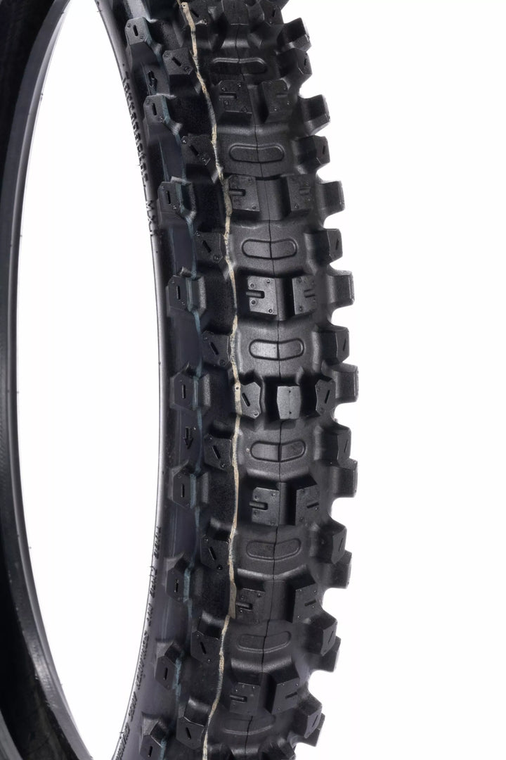 The latest addition to the Motoz MX tyre range is the Terrapactor MXI (MX intermediate) competition tyre. Engineered with a lightweight carcass and designed to excel in intermediate to hard terrain (mix of loose and packed soil, hard packed soil and deep heavy ruts). The benchmark for MX tyre performance across multiple types of terrain!, The MXI tyre stands out with its distinctive pattern, specifically crafted to deliver top performance. By strategically incorporating flex points within the carcass and knobs, the MXI tyre provides predictability and enhanced corner grip, adapting and flexing according to the terrain to give greater control and confidence while riding., Application: MX Intermediate to hard terrain (mix of loose and packed soil, hard packed soil and deep heavy ruts), Full range from Mini-Cross to Big bikes (15 different sizes), Two front tyre sizes, 80/100-21 for the most aggressive on track performance and the all-new 90/100-21 with a taller profile for increased contact patch and better feel and feedback under race conditions, Unique flex zones built into carcass and knobs for improved feel and compliance, Flex zones incorporated into all tread rows to improve corning feel and drive, All new inner sidewall construction for improved compliance in corners and in a straight line