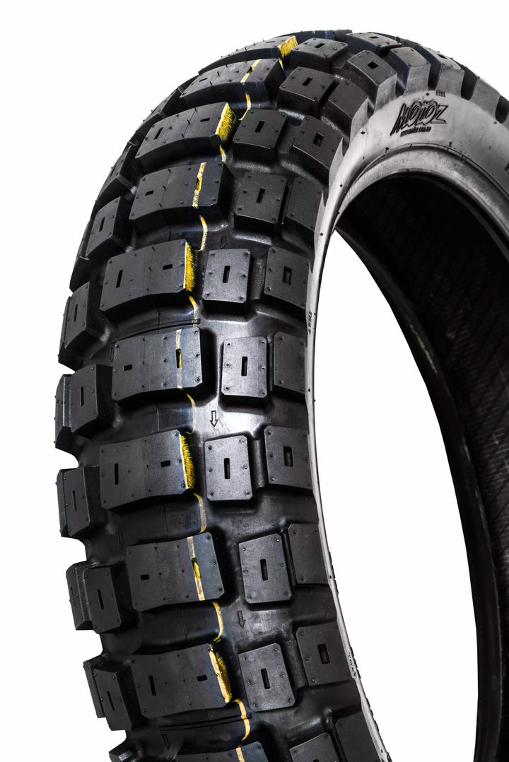 Based on the popular Tractionator Adventure but with more aggressive off-road traction in all weather extremes., Off-road Performance with reasonable on-road manners., Tested and Proven construction and compound for adventure and rally use., Designed in Australia for dependable performance in a wide variety of conditions without the need to change tyre pressures between off road and on road., Self-Cleaning and Self-Sharpening tread pattern gives excellent predictability and power delivery., Hybrid compound with Silica for optimum grip in mud and snow., Excellent choice for conditions from outback desert to coastal forests and fire trails., RallZ also available in range of Tube Type Adventure sizes for light weight adventure bikes.