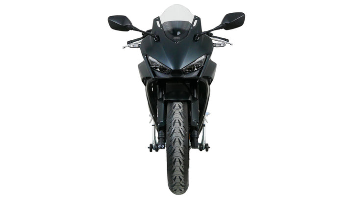 This disc shape was developed for racing and is used by many racing teams. The lower part of the racing windscreen corresponds to the original windscreen, but has a dome-like elevation in the centre. This relieves the helmet of wind pressure and improves aerodynamics. Length (mm):457 Width (mm):358 Height (mm):183 Color:Clear Crank lenght (Mm):NULL Crank material:NULL Windshield type:Racing