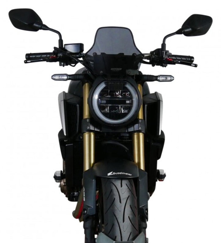 Equipping this popular everyday motorbike with a little wind protection is the perfect solution: with two brackets, the MRA sports screen is quickly attached and noticeably increases comfort against the wind pressure with its 22.5 cm. Length (mm):460 Width (mm):363 Height (mm):183 Color:Tinted Crank lenght (Mm):NULL Crank material:NULL Windshield type:Sport