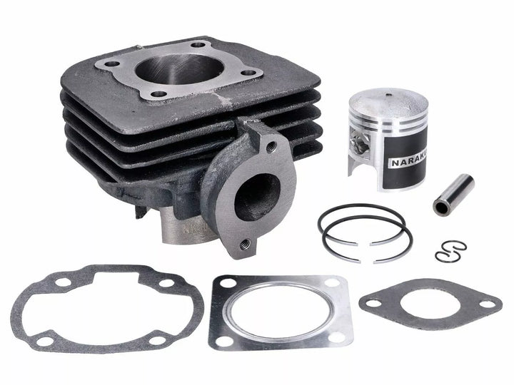 The Naraku 50cc cast iron cylinder is a an affordable and robust alternative for those who are looking for a replacement top end due to cylinder or piston damage, The power output is slightly higher than that of the original cylinder, All in all, a very good quality kit for the price, Supplied with barrel, piston, rings, pin, clips and gaskets, Original cylinder head may be retained