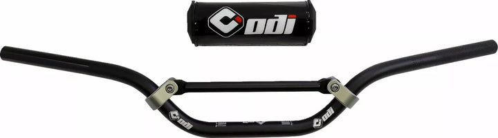 Built for PeeWee 50 models with 3/4” diameter handlebars, Specifically designed for riders looking for a taller bar more aggressive bar with less sweep for racing, Constructed of durable 7075 heat treated alloy, Solid ODI Crossbar for improved strength, Knurled left slide improves grip-to-bar adhesion, Laser Etched ODI graphics