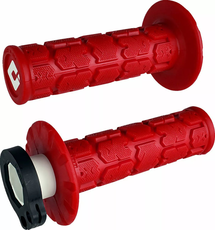 ODI has revamped its popular Lock-On MX Grip to make it even better, The Lock-On Grip System allows you to change or replace grips in seconds without the need for any wire ties or glues, Delivers slip-free performance under any conditions, Simple installation and removal without waiting for glue to dry, Throttle tube included with snap-on throttle cam to match most modern motocross bikes, Knockout ends easily accommodate hand guards, Compatible with V2 throttle cams for additional fitment options