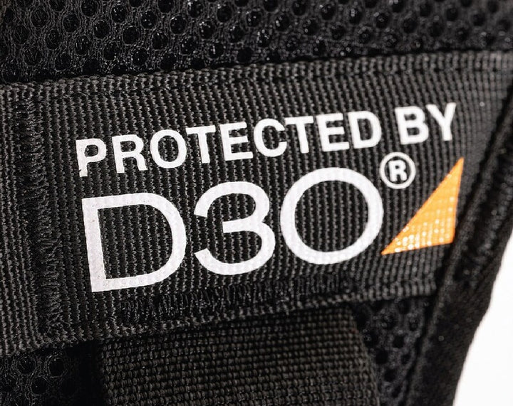 Equipped with a sewn in D3O® Level 2 back protector. D3O® protectors have been developed to be used for protection from blunt impact