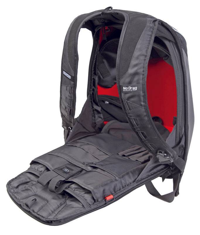 Streamlined single shot molded exterior is water resistant and will not deform from wind shearShoulder gasket conforms to body and increases aerodynamicsBolstered back foam profile increases air ventilationSoft neck shoulder straps increase comfort while riding and will not scratch helmet exterior360-degree reflective logo and safety pipingRemovable zippered fleece lined hip accessory pouchOff center removable hip belt won’t scratch gas tankZippered fleece lined personal electronics/valuables pocketLarge main compartment with adjustable load divider and multiple interior storage compartmentsDeluxe organizer panel with zippered security pocket and stretch mesh dividersDedicated shoe storage compartments for the commuting professionalPadded interior helmet visor sleeveU-shaped zippered expansion gusset increases carrying volumeHigh visibility red interior liningErgonomic, padded and fully adjustable riding specific shoulder straps with quick release exit buckleConcealed aerodynamic carry handleFully adjustable and removable no slip sternum strapIntegrated removable helmet carry strapInterior padded laptop sleeve with elastic closure fits most 15” laptopsPadded iPad/tablet/e-reader sleeveHydration readyCustom metal Ogio logo and trims Specs : Dimensions: 20.5" H x 14.5" W x 7" D – H : 52 – W : 37 - D : 18 (cm)Weight: 3.7 Lbs – 1.6kgCapacity: 1,350 expandable to 1,475 Cubic Inches – 22L expandable to 24L Color: Black Depth: 18 Height: 52 Luggage_Capacity: 22L Width: 37