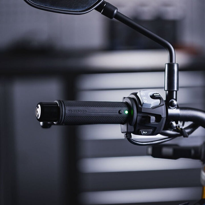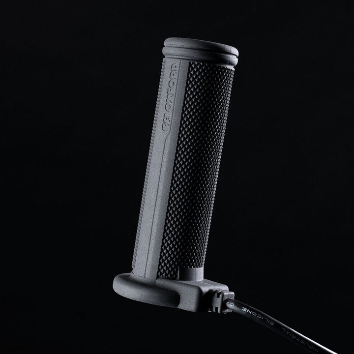 Handtagen är tillverkade i silikon, vilket ökar livslängden med upp till 200% utan att kompromissa med komforten. En integrerad värmereglering i kopplingssidan gör att du snabbt kan justera temperaturen utan att släppa styret.