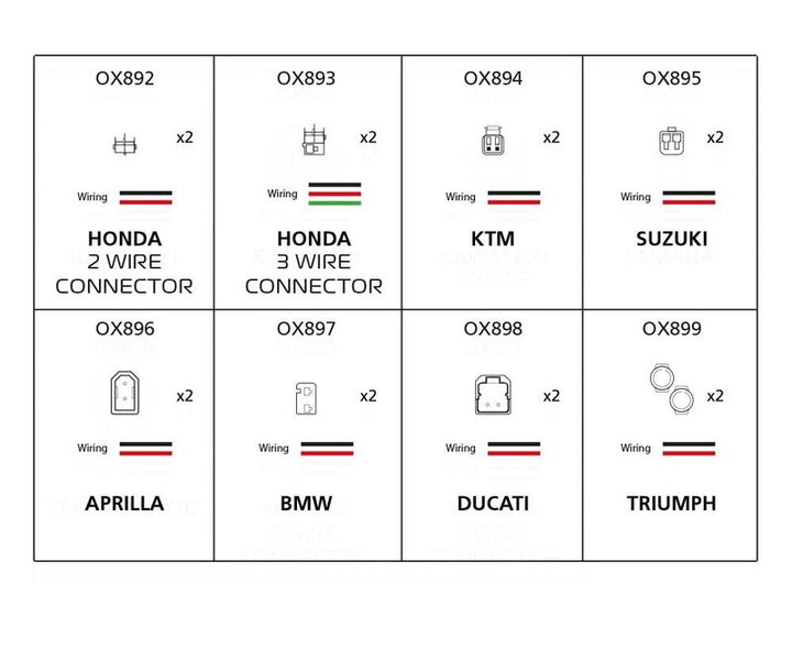 Each bike manufacturer uses different connectors for their indicators. This means that when fitting universal aftermarket indicators you need to cut the original connectors off and replace them with bullet fittings.