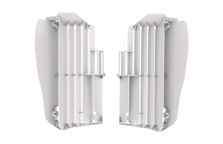 Polisport plastics are made from injected plastic with the own brand developed technologies. All the plastic parts are manufactured with the DGP (Durable gloss Polypropylene), which provides them: high level resistance and gloss finish. Protects radiator from mud and stone projectionsFixing on OEM points Assembly: NULL Color: White Diameter: NULL Homologation: NULL Light type: NULL Material: NULL Max load: NULL Packing: NULL Position: NULL Recommended use: NULL Size: NULL Tilting system: NULL