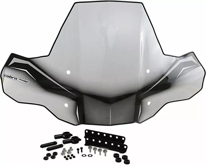 Made of high-quality, optical-grade polycarbonate featuring scratch-resistant surface and distortion-free optics, Universal two-point mounting system makes installation quick and easy, No need to remove a Cobra ProTEK shield for trailering, as long as ATV faces forward, The addition of ribs and contours give the ProTEK windshield added strength