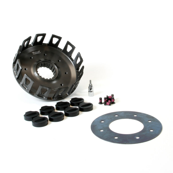 ProX Clutch Baskets are precision machined from heat treated aircraft Billet 7075-T6 aluminium alloy to O.E. precision standards. Sophisticated hard-anodising guarantees extended life under severest racing conditions. Each kit comes with the necessary hardware to make installation a snap.