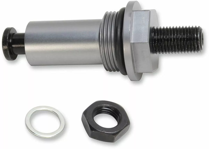 CNC-machined from billet aluminum with a gunmetal finish, Replaces OEM automatic/hydraulic tensioner, Eliminates out-of-timing problems caused by the OEM automatic tensioner, Eliminates excess tension/premature engine wear caused by OEM hydraulic tensioner, Eliminates cam chain rattling caused by factory tensioner failure