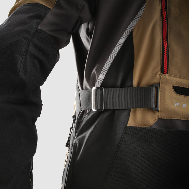 Tack vare flera justeringsmöjligheter på armar, midja, höfter och krage formar sig jackan efter just din kropp – oavsett om du kör med tjocka underställ eller bara t-shirt under. En inbyggd reflexväst kan tas fram vid behov för ökad synlighet i mörker eller dimma.