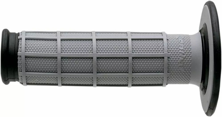 Renthal dual-compound grips combine the durability of Renthal's firm compound grips with the feel and absorption qualities of the Renthal range of softer compound grips, Firm compound is used for the flange, inner sleeve and outer-end of the grip for maximum durability, whereas softer compounds are used for the outer diameter of the grip, which is in direct contact with the palm, fingers and thumb, For use with twist throttle, For 7/8" bars; 4-1/2" L