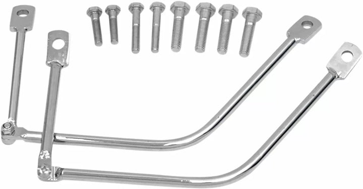 Recommended for use with any saddlebag, Includes two chromed steel saddlebag supports plus all nuts, bolts, and spacers needed for installation