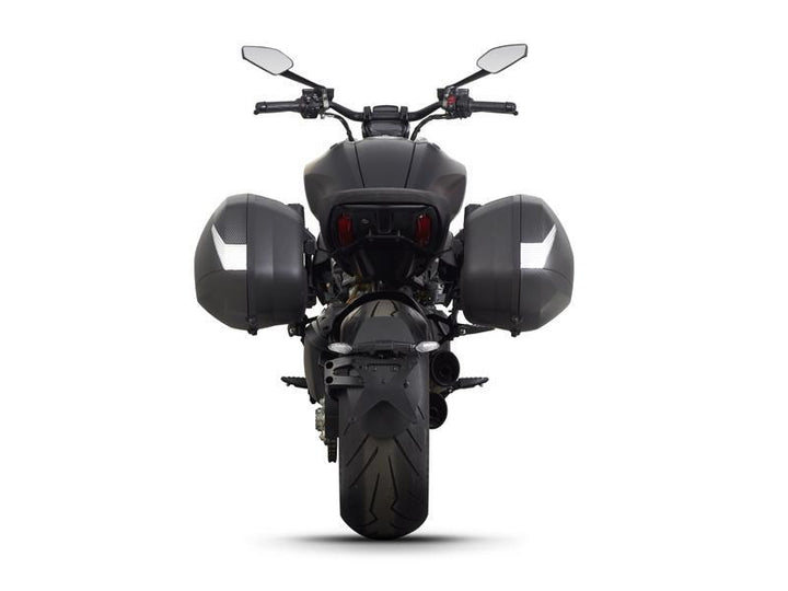 The SHAD 3P kit is an unobtrusive L-shaped arm that attaches to either side of the motorcycle affording 3 points of connection, bracing the pannier in 2 directions. This negates the need for a traditional rectangular, bulky frame and translates into a lighter rack that is easier to install and significantly less conspicuous than other conventional pannier fitting kits.