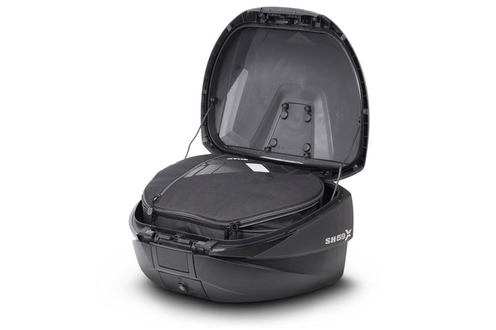 SHAD SH59X är marknadens mest innovativa toppbox, tack vare sin expanderbara volym i tre steg: 46L, 52L och hela 59L. Perfekt för allt från vardagspendling till långresor – du justerar utrymmet på bara några sekunder!