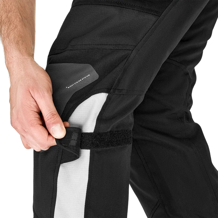 Byxorna är utrustade med vattentäta cargofickor, så du kan tryggt ta med dig det viktigaste även om regnet överraskar. Night Vision System™ med diskreta reflexer ökar din synlighet i mörkret. För extra komfort på långa sträckor kan du dessutom komplettera med dedikerade hängslen – så att byxorna alltid sitter där de ska, oavsett hur många mil du kör.