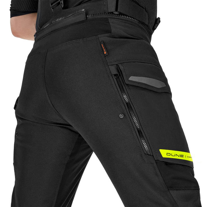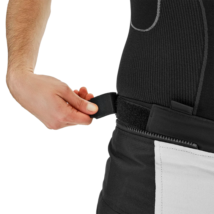 Oavsett om du föredrar klassisk längd eller kortare variant, så kan du justera byxorna i knä, benslut och höft med kardborreband för en nära och bekväm passform. Den stretchiga midjan gör dessutom att de sitter perfekt även efter många timmar i sadeln. Och med 360°-dragkedja och kort anslutningsdragkedja kopplar du snabbt ihop dem med din DUNE-jacka och får en komplett touringoutfit.