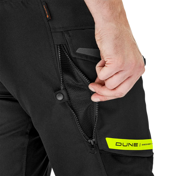 Solen gassar? Eller är det regn i horisonten? DUNE har svaret. Med sin tvålagerskonstruktion – där det yttre skalet kompletteras av en avtagbar NextDry™-membran – kan du enkelt anpassa byxorna efter dagens väder. Och tack vare ventilationspaneler med tryckknappar på låren slipper du klibbighet och överhettning under varma dagar.