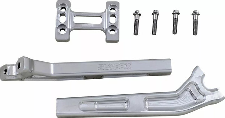 Made with 6061-T6 Aluminum, 3-1/2" center-to-center riser spacing, Top clamp and hardware included, Made in the USA