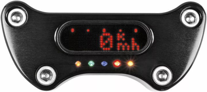 Milled aluminum billet handlebar top clamp for all H-D models with 25,4 mm (1") handlebars, Replaces the upper OEM part of the original handlebar clamp to incorporate the Motoscope Mini, Part No 22010101 sold separately, Features five LED indicator lights, Includes four matching bolts in stainless steel for the clamp, two diodes if only one flasher indicator is used, two bolts to attach the instrument and installation instructions, Available in black or polished finishes