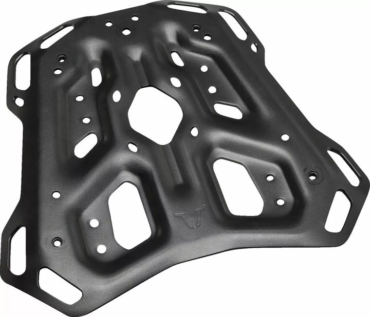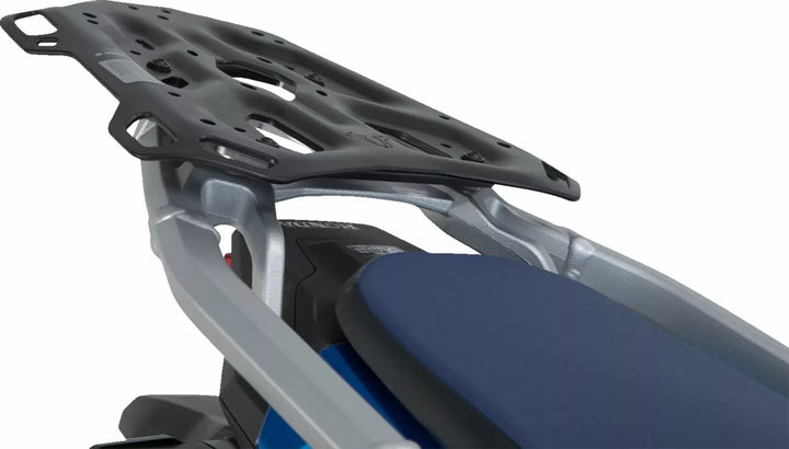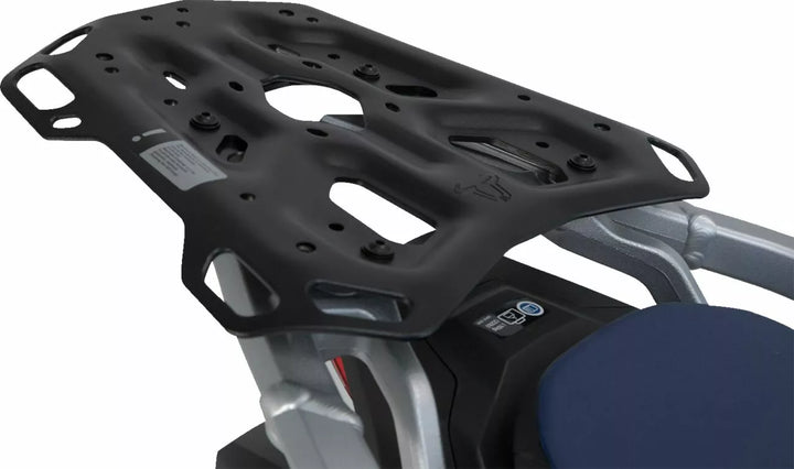 Extremely robust rack for long tours and off-road rides, Exclusive manufacturing processes and its optimized shape lend an extra dose of stability to the rack, Its extreme durability during vibrations, impacts and high weight was tested in the lab and off-road under harshest conditions, Multiple functional bores: for TRAX top cases. SysBag with adapter plate are available separately with the appropriate adapter kit, Offers adapter kits for attaching top cases from Givi, Krauser and Shad, Easy rigging of luggage on numerous, large lashing eyes, threading of 25 mm fasteners possible, Especially large contact surface (Width: 32.9 cm at the front, 22.5 cm at the back, Length: 30.3 cm), Easy installation on original attachment points with bike-specific attachment elements