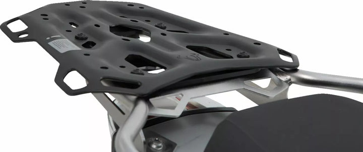Extremely robust rack for long tours and off-road rides, Exclusive manufacturing processes and its optimized shape lend an extra dose of stability to the rack, Its extreme durability during vibrations, impacts and high weight was tested in the lab and off-road under harshest conditions, Multiple functional bores: for TRAX top cases. SysBag with adapter plate are available separately with the appropriate adapter kit, Offers adapter kits for attaching top cases from Givi, Krauser and Shad, Easy rigging of luggage on numerous, large lashing eyes, threading of 25 mm fasteners possible, Especially large contact surface (Width: 32.9 cm at the front, 22.5 cm at the back, Length: 30.3 cm), Easy installation on original attachment points with bike-specific attachment elements