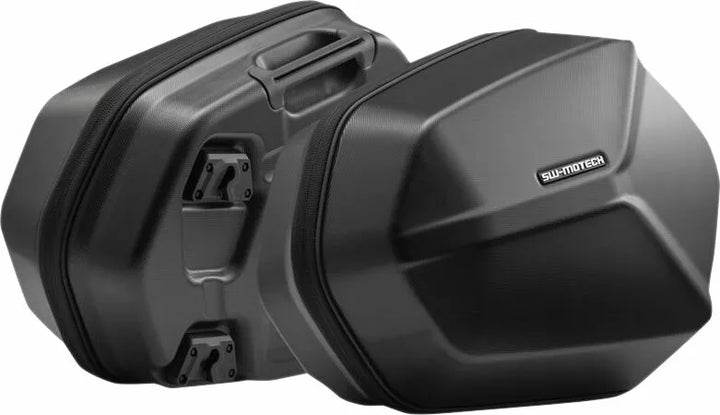 Lightweight and sturdy side cases for motorcycle travelers., Safely secured via quick-release fasteners to the removable PRO/EVO side carriers by SW-MOTECH, Bike-specific PRO or EVO side carrier are available separately, Protection against theft by securing to the side carrier, lockable zipper and lock for motorcycle luggage included in the delivery, 25 l storage per case, weighing just 1.8 kg when empty, Comfortable interior: padded textile lining, elastic cross straps, mesh pocket, bag to store lock for motorcycle luggage, Open it completely on the hotel bed or flip it open partially: Lid limiters with snap buckle secure the content, Carrying handles allow for carrying two cases with one hand, Reflective details for more safety in traffic, Structured surface is easy to care for and scratch-resistant and lends the AERO ABS side cases a modern look, Made from heavy-duty, weather-proof and UV-resistant 2.5-mm thick (inner case) and 2-mm thick (outer case) ABS plastic, Waterproof inner bag included in delivery, Included in delivery, 2 x AERO ABS Side case, 2 x Waterproof inner bags, 2 x Locks for motorcycle luggage