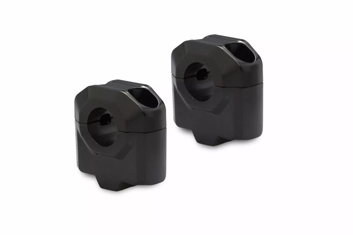 For a more relaxed sitting position, Replaces the original handlebar clamp, For � 22 mm handlebars with a bore spacing of 32-38 mm, Included in Delivery, 2 x Bar riser for � 22 mm handlebar, 2 x Handlebar clamps, Mounting instructions, Mounting material