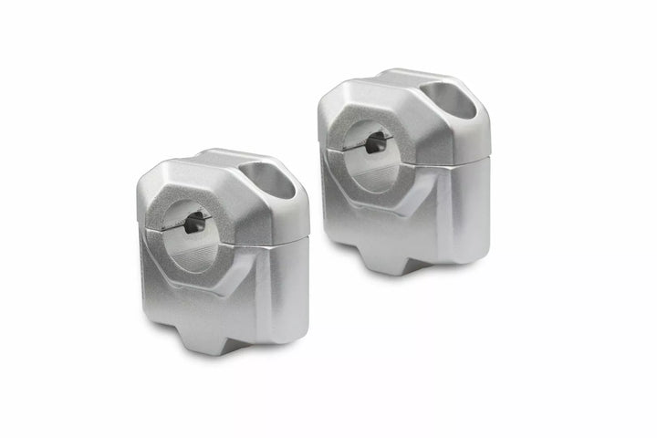 For a more relaxed sitting position, Replaces the original handlebar clamp, For � 22 mm handlebars with a bore spacing of 32-38 mm, Included in Delivery, 2 x Bar riser for � 22 mm handlebar, 2 x Handlebar clamps, Mounting instructions, Mounting material