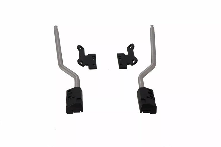 Removable support arms prevent contact between saddlebags and tires, One-time mounting of the bike-specific, inconspicuous brackets for the removable support arms, Removable support arms attachable and removable in a few simple steps, Included in delivery, 2 x BLAZE Removable support arms, Mounting instructions, Mounting material