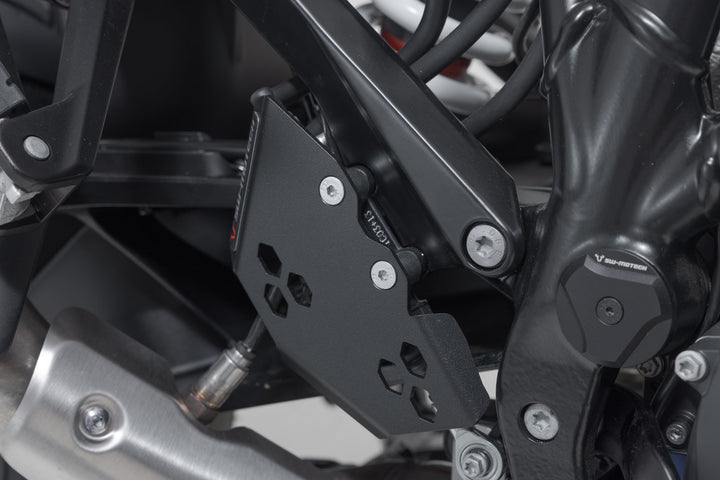 The folded and laser-cut aluminum protector protects the foot brake cylinder - even against unwanted boot contact., Prevents contact between boots and brake pump, Provides additional protection during off-road driving