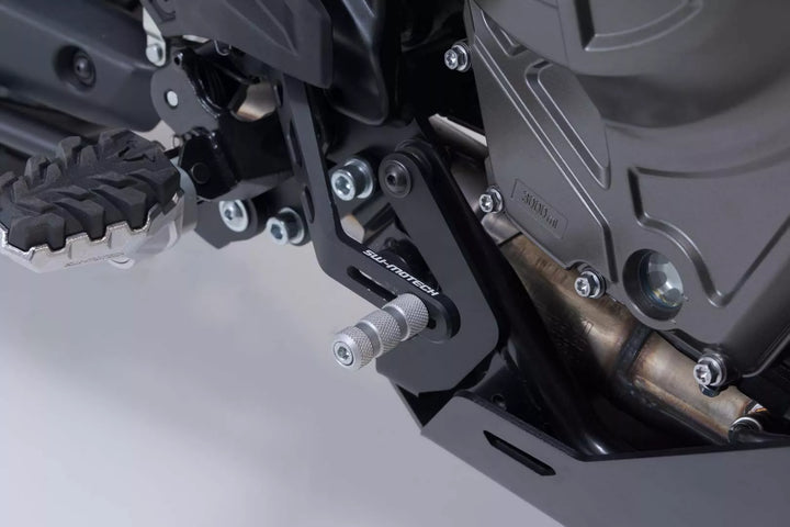 Bike-specific aluminum lever arm, Robust construction, perfect fit: CNC-milled, HART-COATᆴ coated aluminum, High-quality milled tread for maximum stability, Tread STREET included by default in delivery., Better ergonomics and safe operation of the brake pedal, Knurling increases grip and prevents slipping., Platform features various adjustable positions, Adventure tread for off-road touring (sold separately), 1 x Brake pedal, Mounting instructions, Mounting material