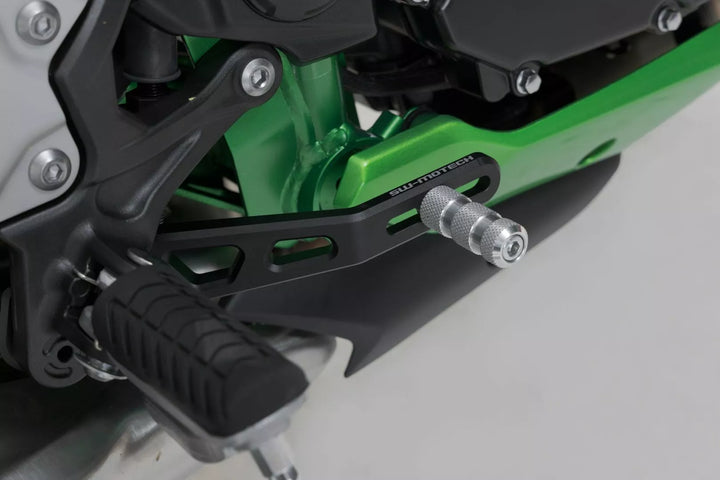 Bike-specific aluminum lever arm, Robust construction, perfect fit: CNC-milled, HART-COATᆴ coated aluminum, High-quality milled tread for maximum stability, Tread STREET included by default in delivery., Better ergonomics and safe operation of the brake pedal, Knurling increases grip and prevents slipping., Platform features various adjustable positions, Adventure tread for off-road touring (sold separately), 1 x Brake pedal, Mounting instructions, Mounting material