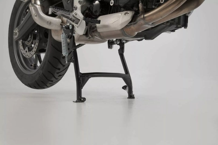 The indestructible, yet lightweight steel tube construction offers the best angle and ground clearance, makes it easy to jack up and provides stability - whether it's during maintenance or on the road, Stands securely when traveling with lots of luggage and during maintenance, Bike-specific design for easy mounting and high cornering clearance, Easy to lift up the motorcycle, Outrigger for optimal leverage, Best corrosion resistance due to sand blasting and powder coating of the surface, Made of robust steel, Vehicle Type Approval for use on German roads is available, Included in delivery, 1 x Centerstand, Mounting instructions, Mounting material