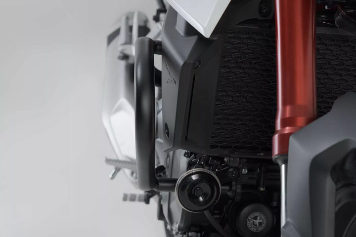 Weather and corrosion resistant, Reliable protection for important components, Highly stable construction appropriate for the peg length of the motorcycle, Model-specific development guarantees precise fit and reliable frame linkage, Optimized lean angle guaranteed, Simple mounting by screwing on factory-made mounting points on the frame
