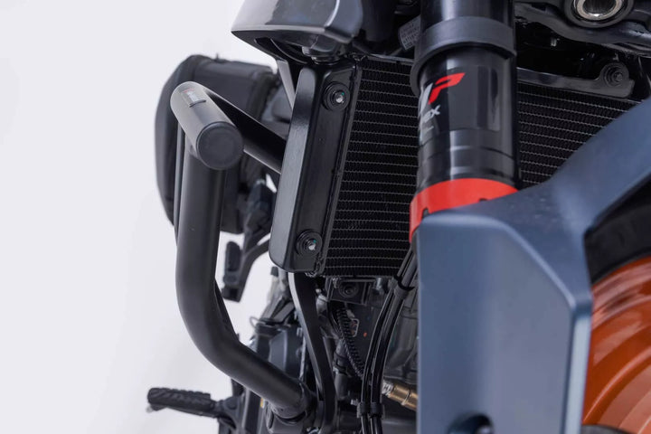 Weather and corrosion resistant, Reliable protection for important components, Highly stable construction appropriate for the peg length of the motorcycle, Model-specific development guarantees precise fit and reliable frame linkage, Optimized lean angle guaranteed, Simple mounting by screwing on factory-made mounting points on the frame
