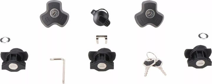 Protect your DUSC hard case against theft: With this keyed-alike lock set, you can lock the case and secure the carrier connection at the same time, Locks the case lid and secures the case to the carrier, For use with the DUSC as a side case or a top case., Includes:, 3 x Locks for cases, 2 x Locks with anti-theft protection for PRO carriers, 2 x Keys - matched set for all included locks, Mounting hardware & instructions