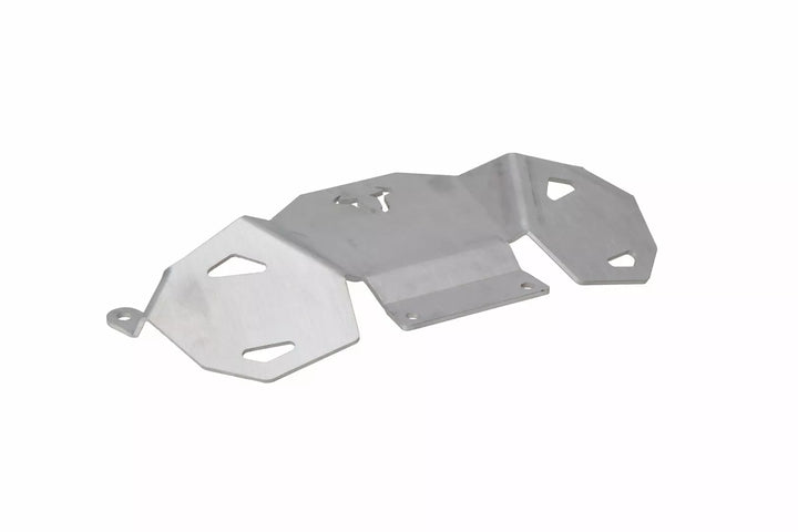 The engine guard extension protects the front area of the engine block from rock chips, Made from brushed and power-coated aluminium, the extension can be mounted on its own or in addition to an SW-MOTECH engine guard, 3-piece protection made of 3 mm thick aluminum, Extends the engine guard in front of the engine block by up to 130 mm, Included in delivery, Mounting material, Mounting instructions