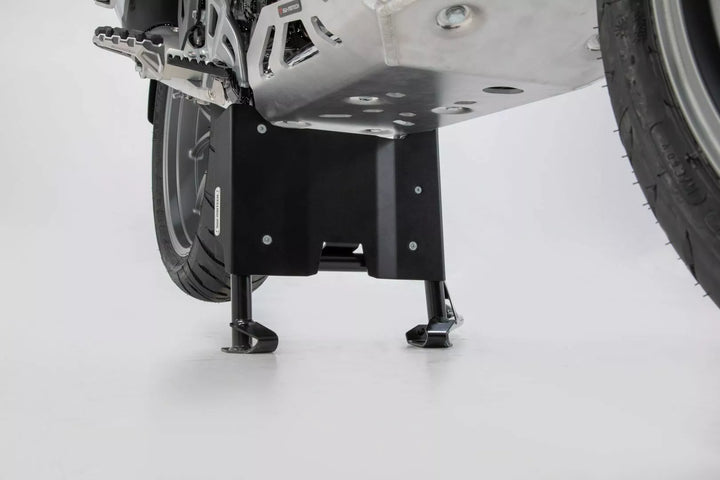 The engine guard extension protects the front area of the engine block from rock chips, Made from brushed and power-coated aluminium, the extension can be mounted on its own or in addition to an SW-MOTECH engine guard, 3-piece protection made of 3 mm thick aluminum, Extends the engine guard in front of the engine block by up to 130 mm, Included in delivery, Mounting material, Mounting instructions
