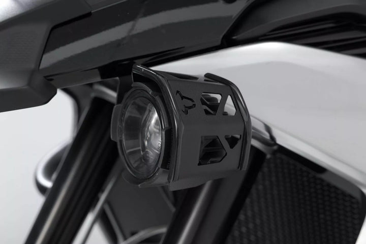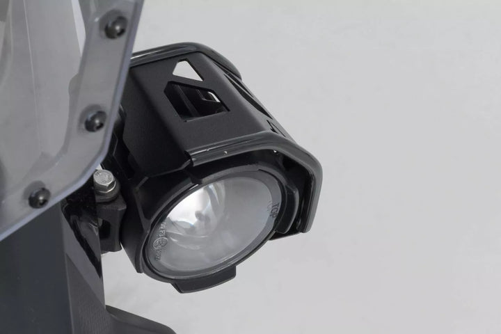 The powder-coated steel protector protects the housing of the SW-MOTECH EVO lights while giving your bike an adventurous look., It is attached directly to the lights with only two screws., Compatible with EVO high beam and fog lights from SW-MOTECH, Protection of the light housing, Simple attachment of the guard to the screw connection of the lights, Made of corrosion-resistant and powder-coated steel, With laser-etched SW-MOTECH logo
