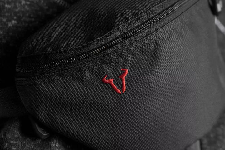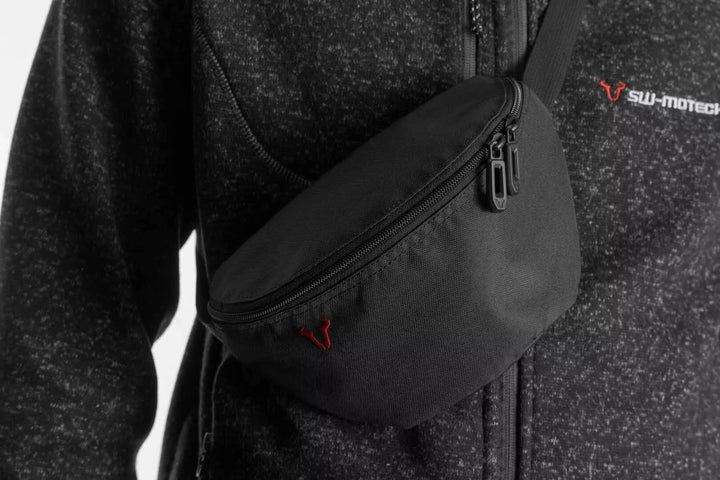 Belt bags are becoming an indispensable companion for motorcyclists while riding and also in their free time, They store all the little everyday things: smartphone, keys, wallet, driving licence, documents and much more, Thanks to its adjustable abdominal belt, the belt bag can be perfectly adapted to the amount of clothing worn: the belt bag sits perfectly over an outfit combination or a T-shirt, The special click closure is also easy to use while wearing gloves, Universal fit, Adjustable abdominal belt, Abdominal belt with a click fastener – easy to use even while wearing gloves, Main compartment with a zipper, Additional compartment on the back
