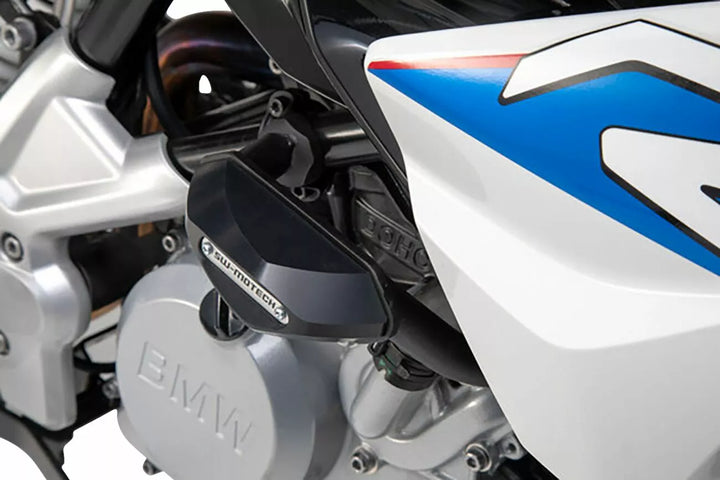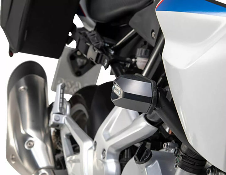 Provides additional protection in the event of a fall, Protects the frame, engine and fairing, The shape, surface and material of the pads provide excellent sliding properties to reduce damage to the motorcycle, The robust aluminium mounting bracket is easy to install, and the abrasion-resistant, CNC-milled slider pads are replaceable, Well-shaped, exchangeable (if needed) slider pad made of abrasion-resistant polyamide, Large contact surface for best possible force distribution, Optimized surface with good gliding properties, Extremely solid, CNC-milled substructure made of aluminum alloy, Easy mounting and sturdy frame attachment thanks to bike-specific add-on elements, Includes mounting hardware and instructions