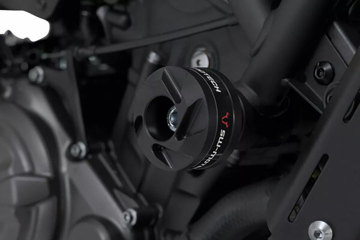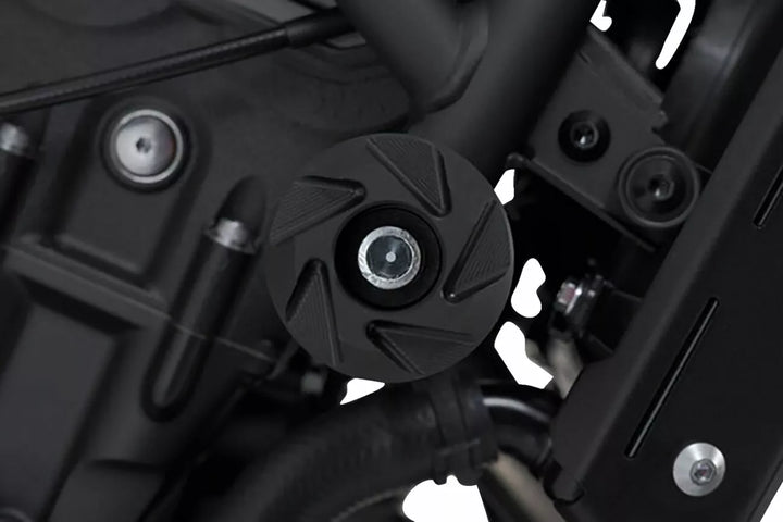 Provides additional protection in the event of a fall, Protects the frame and engine, Well-shaped, exchangeable (if needed) slider pad made of abrasion-resistant polyamide, Optimized surface with good gliding properties, Easy mounting and sturdy frame attachment thanks to bike-specific add-on elements, Secure connection by mounting on to original attachment points on the frame, Includes mounting hardware and instructions