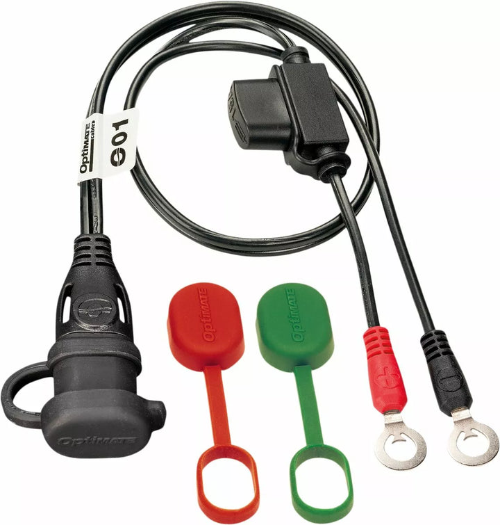 Premium quick connect permanent battery lead for your battery, Rubber sealing cap and shroud for OptiMATE heavy duty SAE connector, 40°C/-40°F very low temperature use; cable remains flexible at ‘below freezing’ temperatures., Industry standard 2-pole SAE connector, Cable max. rating: 5 Amp, 1/4" / M6 ringlets, 15 A fuse