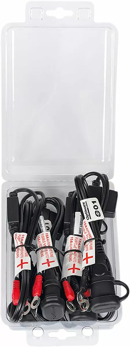 Premium quick connect permanent battery lead for your battery, Rubber sealing cap and shroud for OptiMATE heavy duty SAE connector, 40°C/-40°F very low temperature use; cable remains flexible at ‘below freezing’ temperatures., Industry standard 2-pole SAE connector, Cable max. rating: 5 Amp, 1/4" / M6 ringlets, 15 A fuse