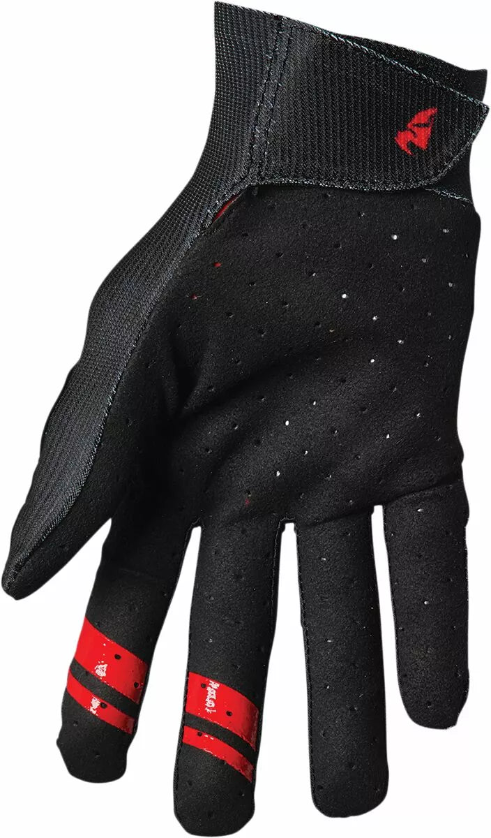 Athlete inspired fit and function, Wrapped inner thumb for durability, Minimalist chassis design, Perforated Clarino palm, Hook and loop wrist closure, Silicone treated fingertips for improved lever control