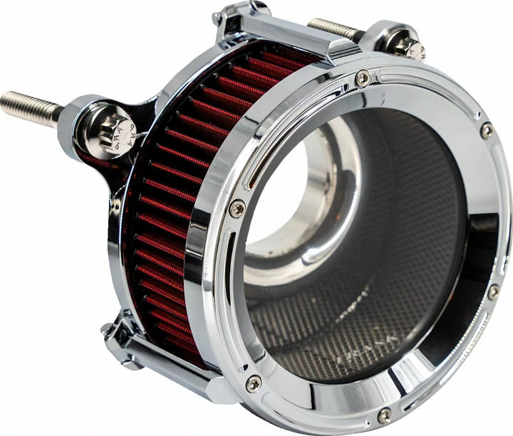 Features a billet aluminum backing plate with hidden integrated breather system and a plexiglass outer cover, Snap-in velocity stack for improved airflow, High-flow air filter is reusable; just clean and re-oil, Dyno-developed and tested, Delivers an impressive ~8HP power boost over stock, Includes mounting hardware and 1 rain sock, Made in the USA, Recirculates head pressure back into the throttle body, aligning with the stock Harley-Davidson air cleaner setup. For those seeking to vent the head pressure externally, our external breather kit is also available for purchase.