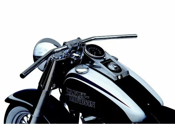 High quality steel tube handlebars, Three-part coating process prevents corrosion, A variety of shapes available, 25,4 mm handlebar tube diameter, No matte chrome areas on any of the bends, Available in chrome, black or aluminum finish, Some are also available with cable indents or cable holes, Will accept H-D OEM heated grips